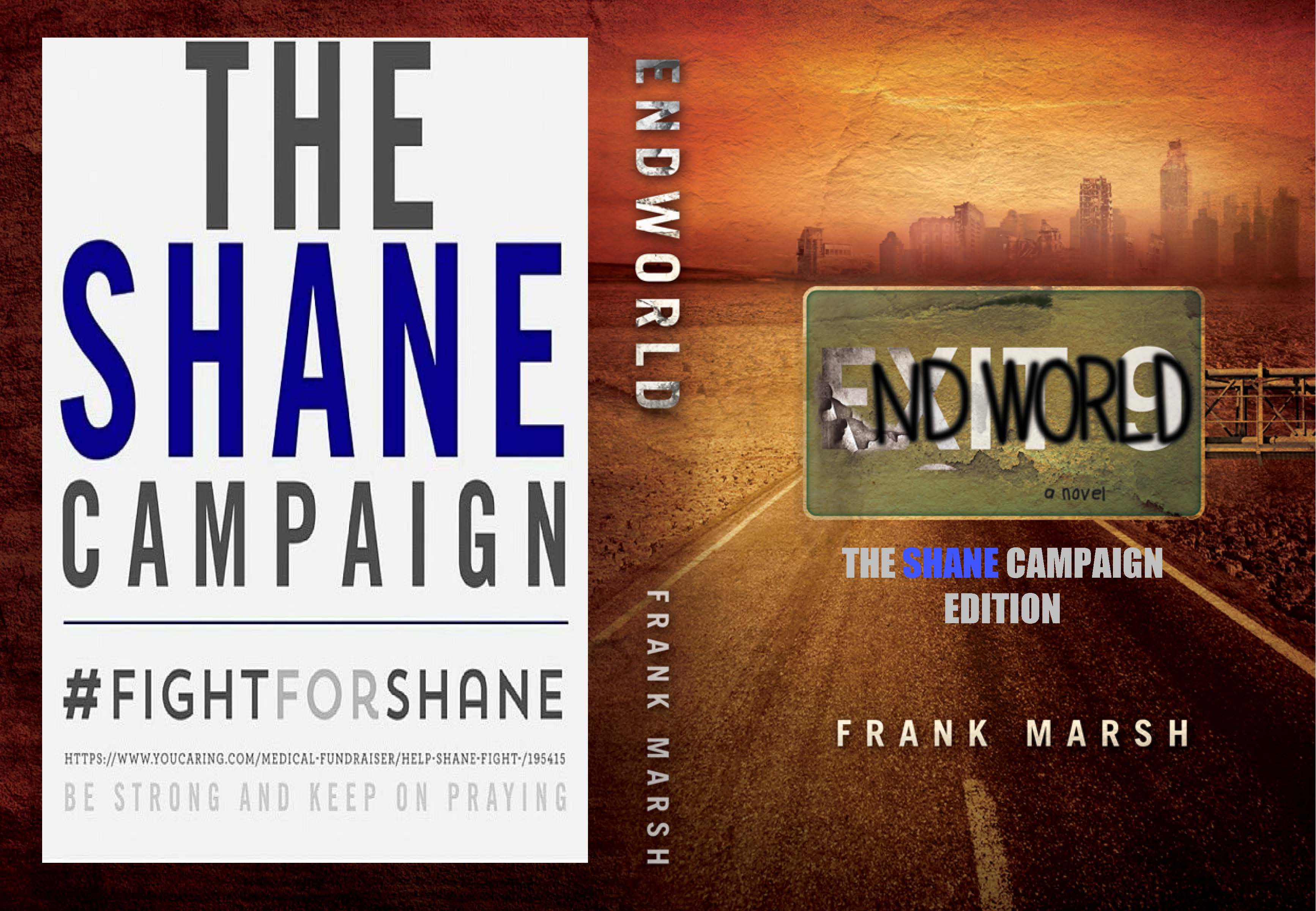 Additionally, in doing this I can give you, my wonderful readers something as well. This edition of ENDWORLD – A Novel? It is all me. It’s very personal… very near and dear to my heart, mind and soul much like Shane’s fight is. I re-formatted both the paperback and the e-copy myself (and wow was it tough) and admittedly? I am more pleased with the result than I was with the original. That is nothing against Damonza and the job that he and his team did last Spring. And the cover/paperback wrap is mostly unchanged save for the addition of The Shane Campaign logo. But the internals flow better now. I’ll be curious to hear if you feel the same way as you delve deeper and deeper into it. Let me know! You know how to reach me (and if you don’t, check out the “About Frank Marsh” tab).